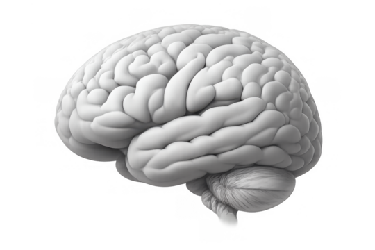 Human brain with circuit board design isolated on transparent background