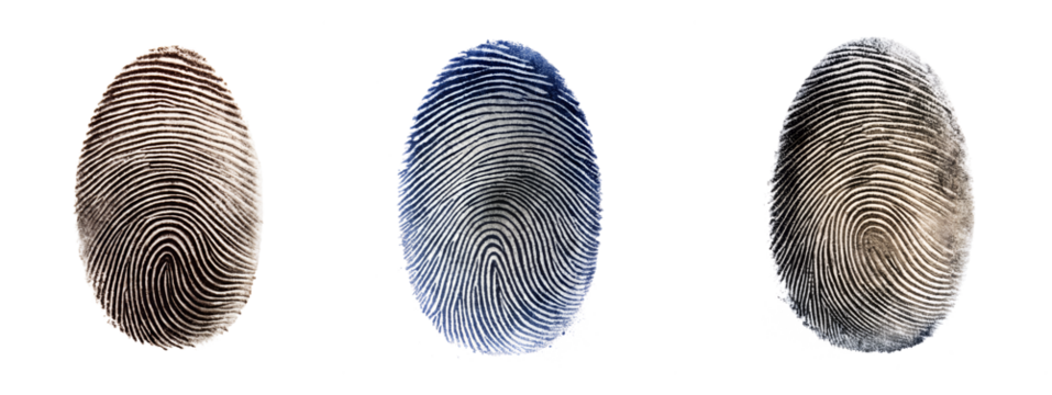 Three Unique Fingerprint Impressions Isolated on White Background transparent background Generative AI