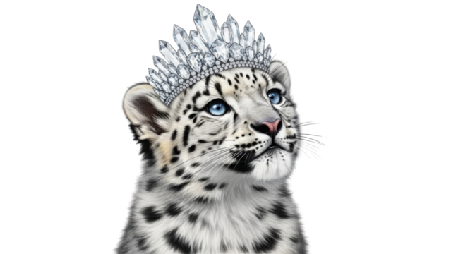 Whimsical ice fox pup sitting on transparent background