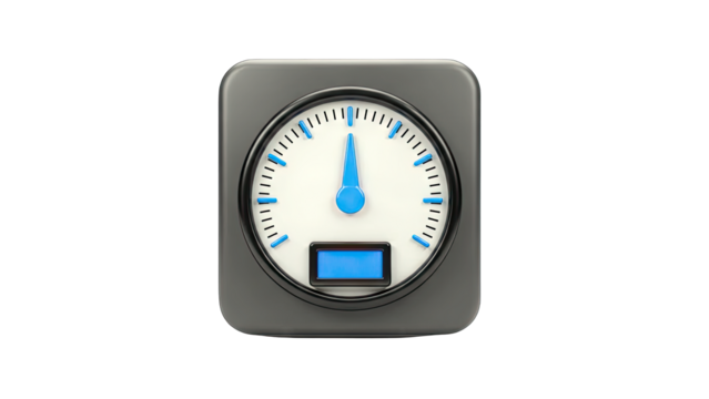 Colorful speedometer gauge isolated PNG on transparent background, performance measurement tool for dashboard and infographic design