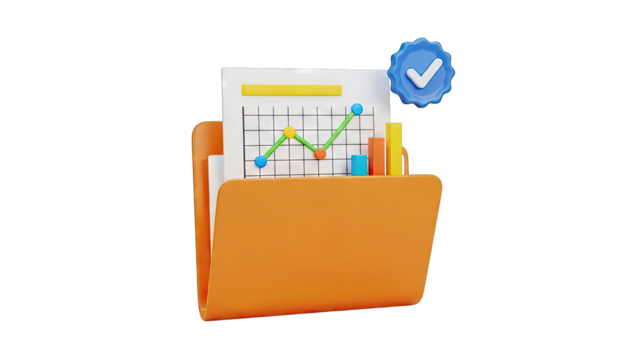 3D Render of Business Folder with Financial Charts and Verified Badge
