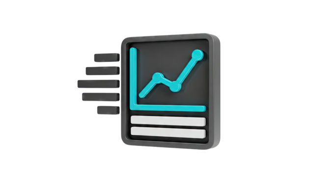 3D Rendering of a Computer with Icons: Finance, Communication, and Status