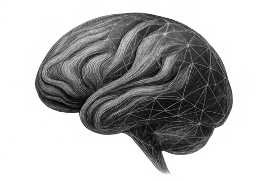 Mental vortex abstract concept with glowing brains swirling, representing powerful mind, intelligence, and consciousness on a transparent background