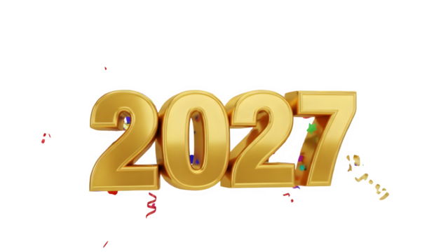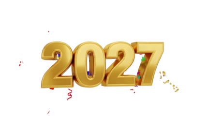 Shiny golden 3D numbers 2027 for New Year celebration against black background