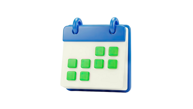 3D Calendar Icon with Green Squares