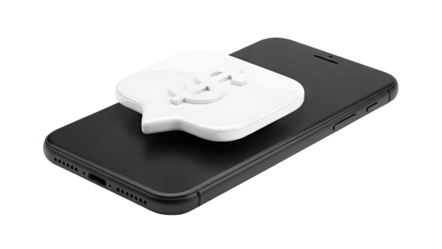 Blue computer mouse connected to a dollar sign speech bubble on transparent background