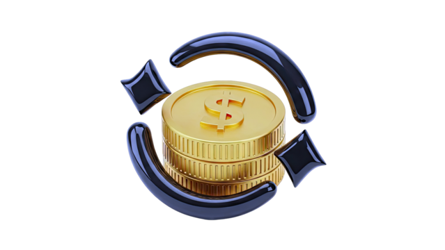 Stylized Gold, Silver, and Iridescent Coins with Dollar Symbol – Digital Currency PNG