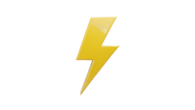 3D Yellow lightning bolt symbol on transparent background