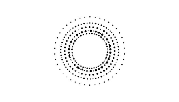 A scattered array of blue and gray pixels on a black background with a central circular shape present