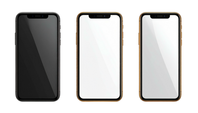 Smart phone mockup set blank isolated Transparent screen , PNG High quality Image device front view shadow Mobile phone app user experience UX or app UX