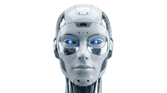 Futuristic ai robot face isolated on transparent background isolated on transparent background