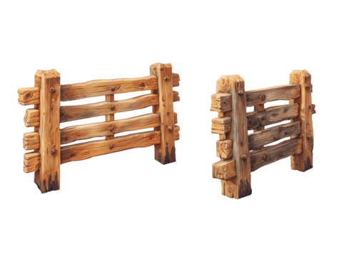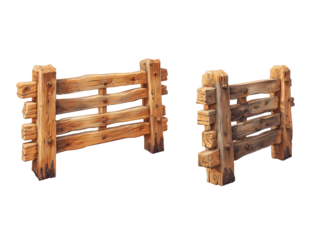 Two Wooden Fences Overgrown with Ivy, Isolated on Transparent Background, Game Asset, Nature, Vegetation, fence, ivy, asset