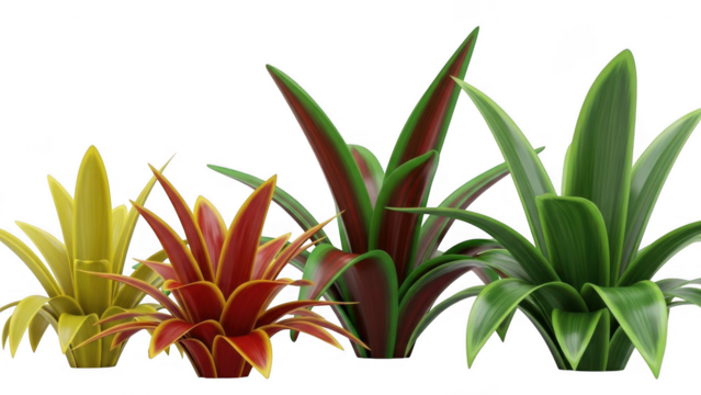 Colorful bromeliads isolated on transparent background