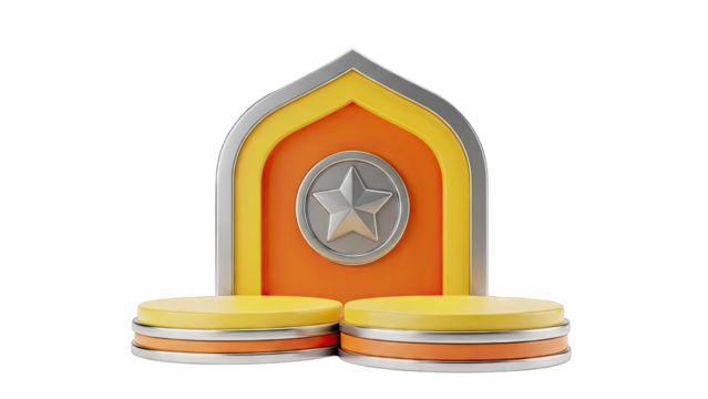 3D Rendered Star Award Podium with Orange and Yellow Accents