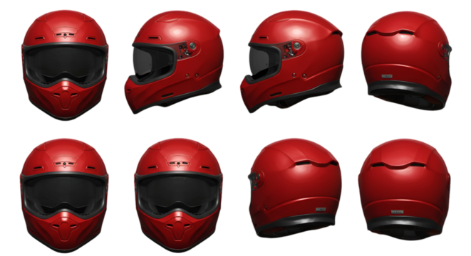 3D Rendered Red Motorcycle Helmet Isolated on Transparent Background