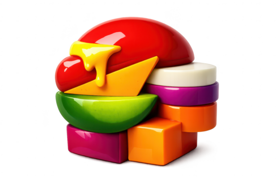 Colorful abstract circles overlapping on a transparent background for modern artistic design or digital art projects