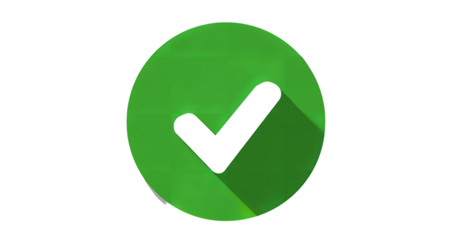 Green check mark in black circle, representing completion, success, approval, validation, and confirmation on transparent background