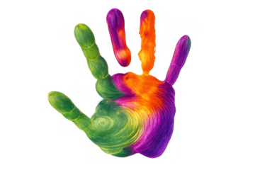 Handprint expressing diversity and creativity with vibrant rainbow colors on a transparent background
