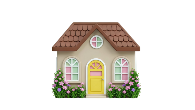 Elegant white mansion with columns, balcony and bushes, isolated on transparent background, perfect for architectural visualizations or design projects
