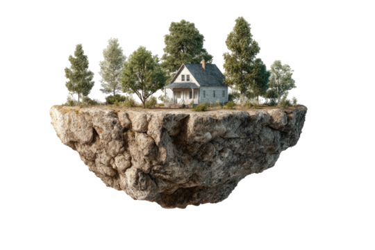 Floating island home with trees