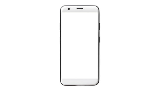A hand holding a smartphone with an empty white screen, isolated on a white background. The image focuses on the device and hand for mockup or presentation. Ai generative