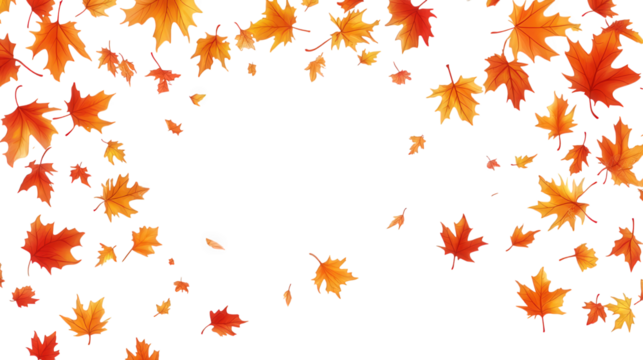 n arrangement of vibrant orange and yellow autumn leaves scattered against a white background. creating a seasonal and festive atmosphere the design is suitable for fall-themed graphics. invitations.
