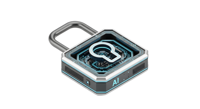 Futuristic AI Security Lock Digital Illustration with Cyber Tech Elements