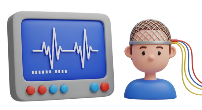3d quiet mind app icons 3d cartoon person with brain scan monitor isolated on transparent background