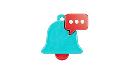3D Notification Bell with Speech Bubble Icon on transparent background