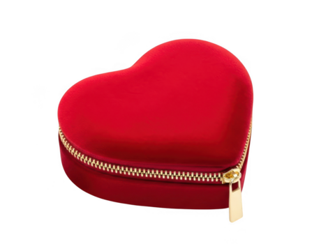 Red heart-shaped box with gold zipper isolated on transparent background