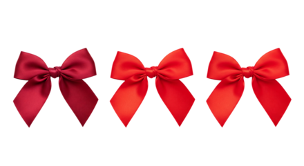 Red satin bows, tied, isolated on transparent background