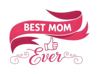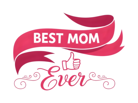 Pink Ribbon with Mom Ever Text and Thumbs Up Symbol on Transparent Background
