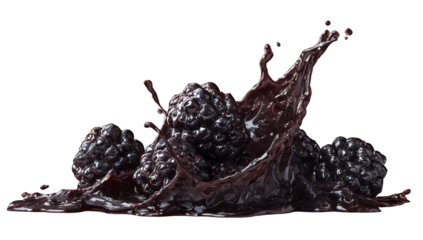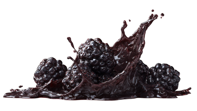 Dark berries in a liquid splash