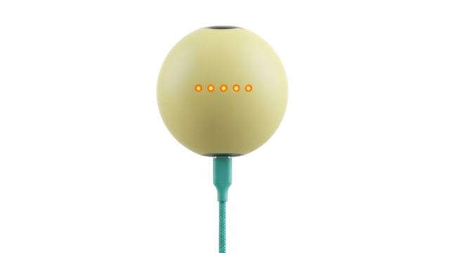 Isolated smart home assistant device with digital display lights and connecting USB cable