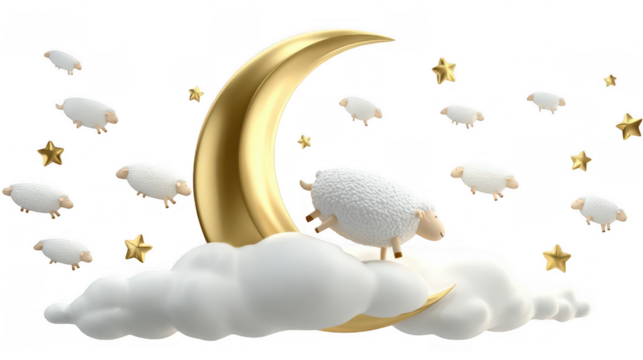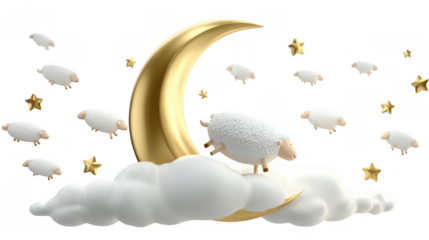 Stylized crescent moon floating on transparent background
