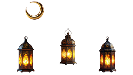 Decorative lanterns and crescent moon isolated on transparent background isolated on transparent background