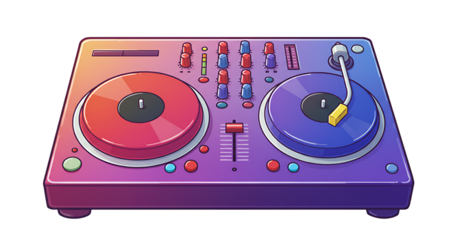 professional DJ mixing equipment setup featuring dual turntables with a central mixer isolated