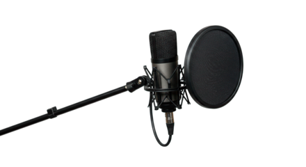 A professional microphone with a pop filter, perfect for recording music or podcasts.
