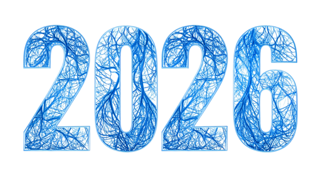 Year 2026 illustrated with icy, interconnected blue vein-like patterns