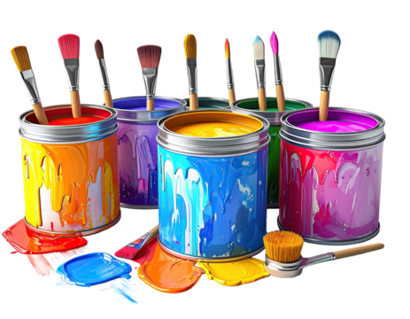 Colorful paint cans and brushes (1)