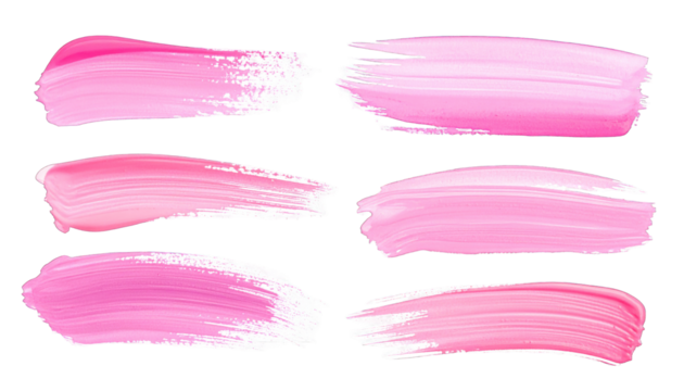 Six brushstrokes of various pink hues against a stark black background