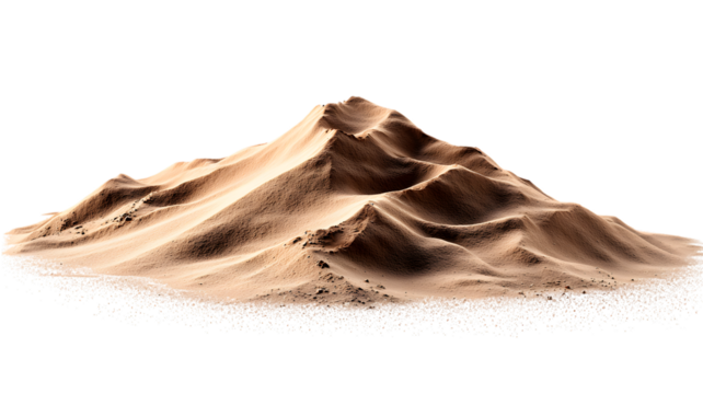 Detailed digital rendering of a desert sand dune showcasing intricate textures and lighting isolated on white transparent background PNG cutout