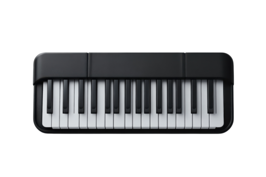 Sleek digital piano with elegant black finish, perfect for modern music enthusiasts and performers. Isolated on transparent background, png