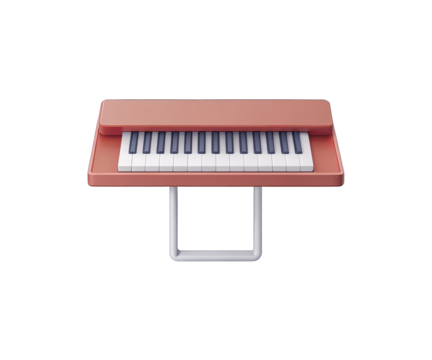 Minimalist coral keyboard instrument, floating on black background with white metal stand