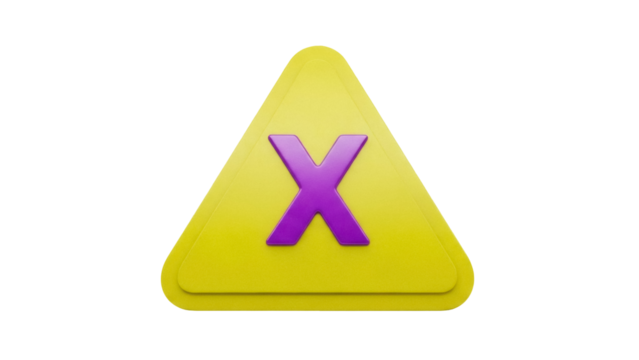 Isolated yellow danger sign with purple x in center, symbol for caution, risk and hazardous areas