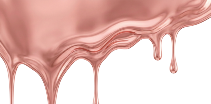 Shiny rose gold liquid dripping, transparent background