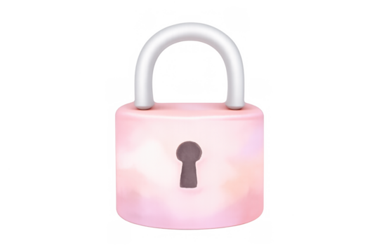 Pink padlock 3d rendering symbolizing digital security, data protection, privacy, and access control with a transparent background