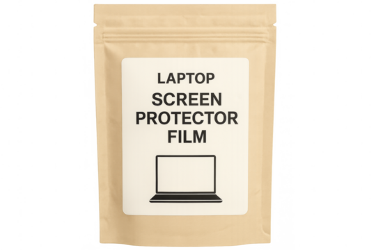 Laptop screen protector film in packaging with transparent background