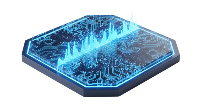 Blue Hexagonal Circuit Board with Glowing Data Waves isolated PNG with Transparent Background