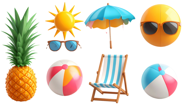 Flat yellow smiley face with blue summer ring on transparent background